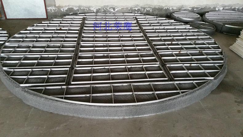 絲網除沫器一般是從人孔遞進塔器的,人孔和絲網除沫器的上下關系決定了絲網除沫器的安裝方式。人孔開在絲網除沫器的上方,從上往下遞,這叫上裝式絲網除沫器;人孔設在絲網除沫器的下方,從下往上遞,這叫下裝式絲網除沫器。二者對于絲網除沫器的元件來說是完全一樣的,只是在支承件上有所不同。