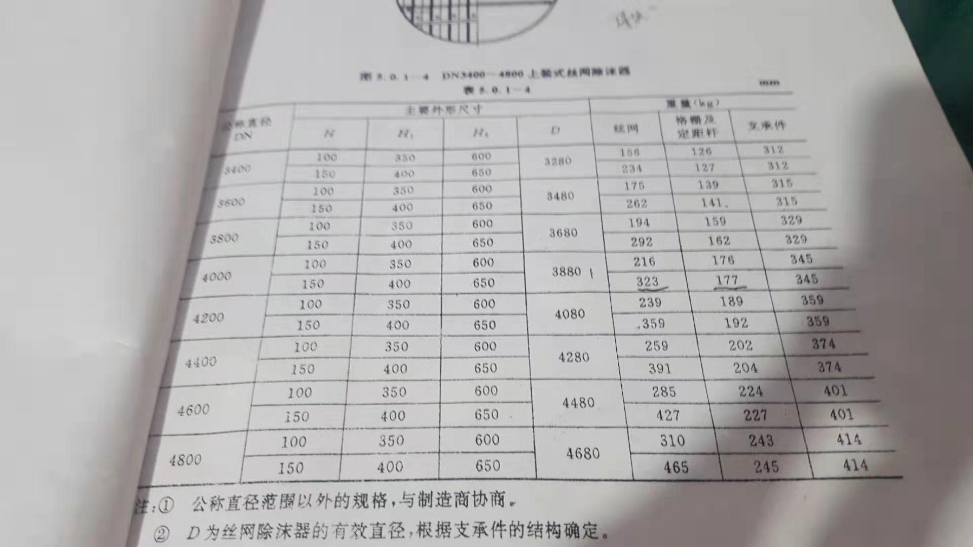 做為有著十幾年經(jīng)驗的絲網(wǎng)除沫器的老廠家,河北榮鷹金屬網(wǎng)有限公司負(fù)責(zé)任地告訴您,在購買絲網(wǎng)除沫器這種產(chǎn)品之前,請先下載中華人民共和國行業(yè)標(biāo)準(zhǔn) 絲網(wǎng)除沫器 HG/T21618-1998,請先把它從頭至尾的閱讀一遍,對絲網(wǎng)除沫器這種產(chǎn)品有個大概的了解以后,您會發(fā)現(xiàn),該標(biāo)準(zhǔn)規(guī)定了絲網(wǎng)除沫器所用氣液過濾網(wǎng)的四種型式SP型、HP型、DP型、HR型,規(guī)定了各種型式的容積重量、比表面積、空隙率,也標(biāo)出了絲網(wǎng)除沫器所用到的各種材質(zhì),絲網(wǎng)除沫器規(guī)格的表示方法,還有操作氣速的確定,絲網(wǎng)除沫器直徑DN的確定方法,絲網(wǎng)除沫器隨著氣速的升高它的壓降的變化等等。該標(biāo)準(zhǔn)大部分的篇幅都被表格所充滿,這些表格規(guī)定了各種直徑,絲網(wǎng)的重量是多少,格柵的重量是多少,支承件的重量又是多少。請看下圖