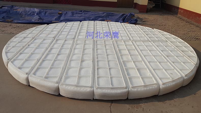 DP型(高效型)絲網(wǎng)除沫器面對(duì)材料選擇時(shí),主要考慮操作系統(tǒng)中介質(zhì)的腐蝕性和操作溫度。不銹鋼絲網(wǎng)除霧器具有良好的機(jī)械強(qiáng)度和耐腐蝕性能,并能在較高溫度(≤400℃)下工作。常用的有S30408絲網(wǎng)除沫器,S30403絲網(wǎng)除沫器,S31608絲網(wǎng)除沫器,S31603絲網(wǎng)除沫器,S32168絲網(wǎng)除沫器;合成纖維絲網(wǎng)除沫器能耐多種介質(zhì)腐蝕,但機(jī)械強(qiáng)度小、操作溫度較低(66~77℃,最高為150℃)。常用的有PP(聚丙烯)絲網(wǎng)除沫器,PE(聚乙烯)絲網(wǎng)除沫器,PVC(聚氯乙烯)絲網(wǎng)除沫器,PA(尼龍)絲網(wǎng)除沫器,PTFE(聚四氟乙烯)絲網(wǎng)除沫器。為提高DP型(高效型)絲網(wǎng)除沫器的操作性能和除沫效果,可與金屬絲網(wǎng)交織,形成混編絲網(wǎng)。根據(jù)實(shí)際使用結(jié)果,這種混編絲網(wǎng)具有更高的分離效率。